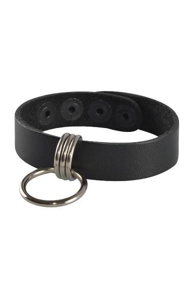 Черный кожаный браслет с подвесным колечком
