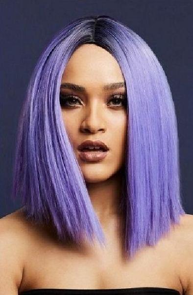 Фиолетовый парик Кайли. Прическа - перевернутый длинный боб с центральным пробором.