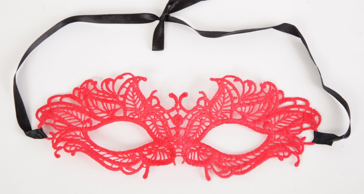 Кружевная маска в венецианском стиле с многочисленными узорами. Завязывается на черные атласные ленты. Упаковка - бумажный конверт. Размеры - 22,5 х 8 см.