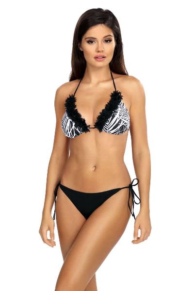 Купальник раздельный для девушки. Бюстгальтер-шторка мягкий, с эластичными вкладышами, тонкие бретели завязываются на шее сзади и спине. Трусики слип с заниженной линией талии на стрейч-подкладке, по бокам тонкие завязки. В комплекте: лиф, трусики. Внимание: европейские размеры! См. размерную сетку производителя.