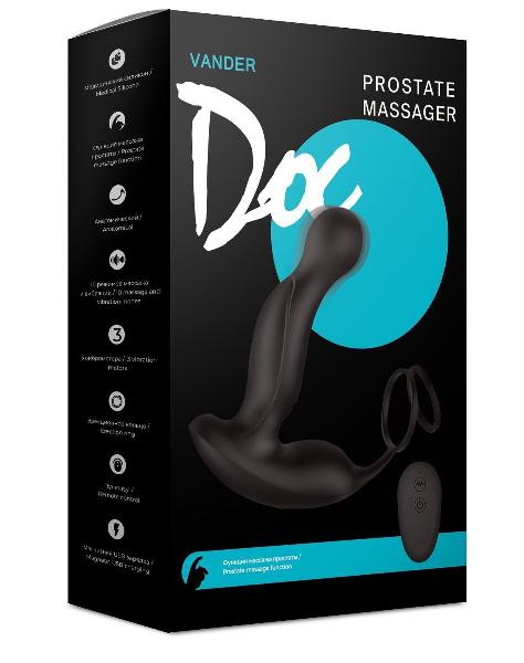Стимулятор простаты от Vander с вращающейся головкой, эрекционным кольцом и пультом ДУ. Управляется, как с пульта, так и с самого массажера. Перезаряжаемый (заряжается при помощи USB магнитной зарядки), полностью водонепроницаемый, Рабочая длина - 11 см.