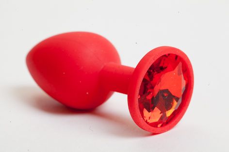 Красная силиконовая анальная пробка с красным стразом - 7,1 см.