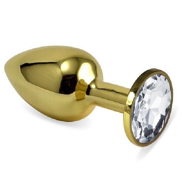 Золотистая анальная втулка с прозрачным кристаллом - 7 см.