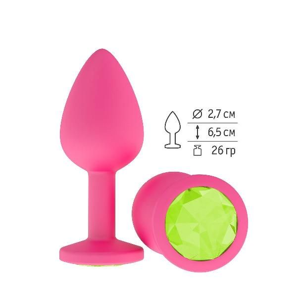 Розовая анальная втулка с лаймовым кристаллом - 7,3 см.