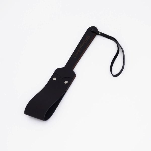 Черный кожаный паддл с деревянной ручкой - 34 см.