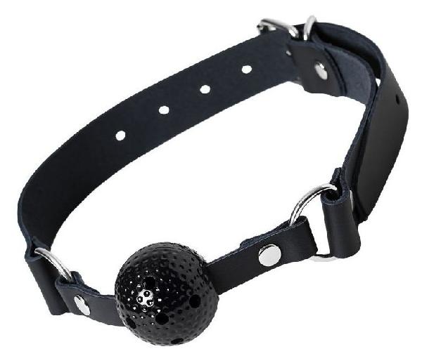 Черный кляп-шарик с отверстиями на регулируемом ремешке