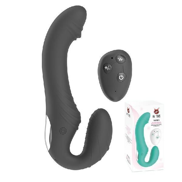 Чёрный безремневой вибрострапон Roma с пультом ДУ