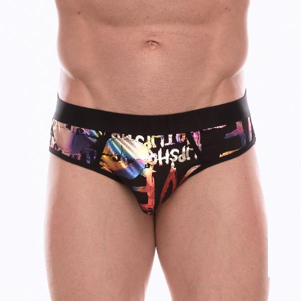 Черные трусы-джоки с разноцветным блестящим принтом.