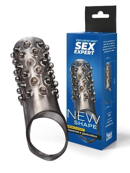 Дымчатая насадка на пенис с выпуклостями - 12 см.