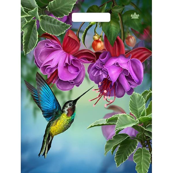 Пакет с принтом в виде колибри в цветах с вырубной ручкой (31х40 см)