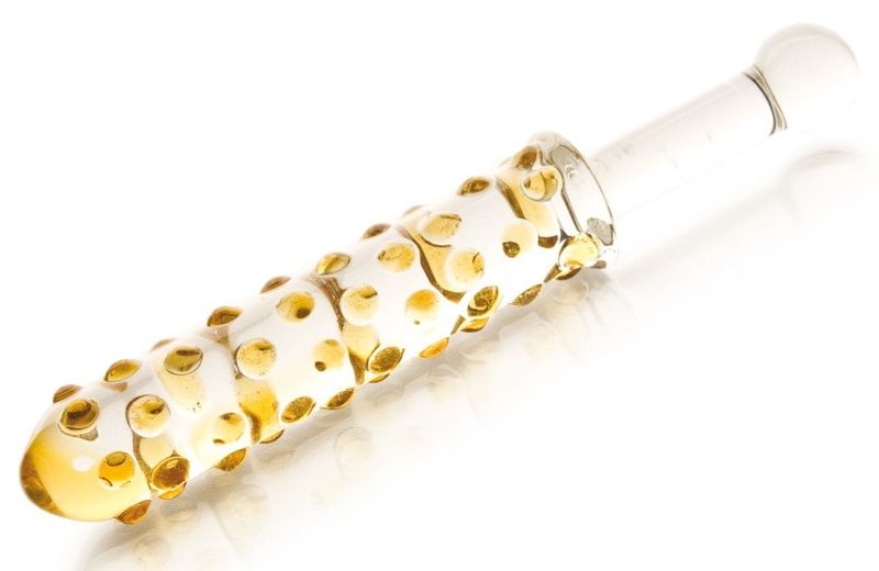 Стеклянный анальный фаллос с выпуклыми точками - 24 см.