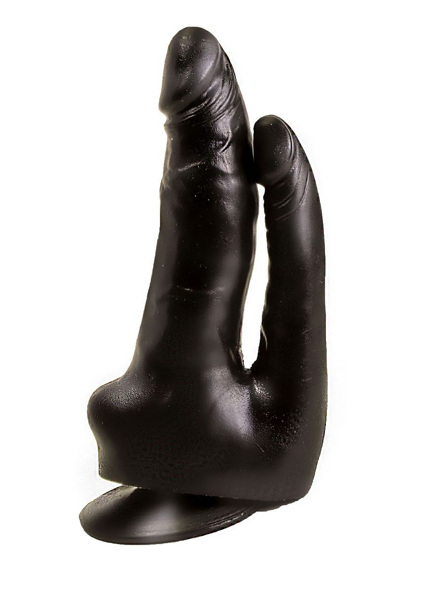 Двойной фаллоимитатор чёрного цвета на присоске - 17 см.