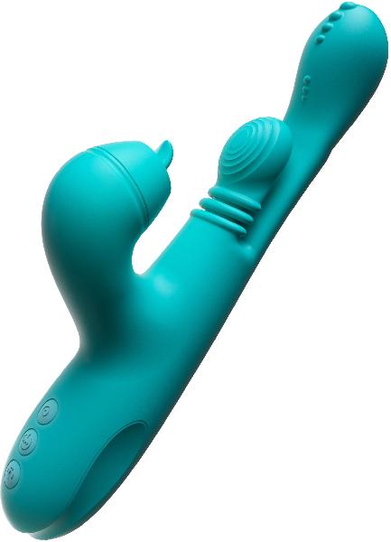 Зеленый инновационный вибратор-кролик Sensa Sway с технологией массажа на 360 градусов - 25 см.
