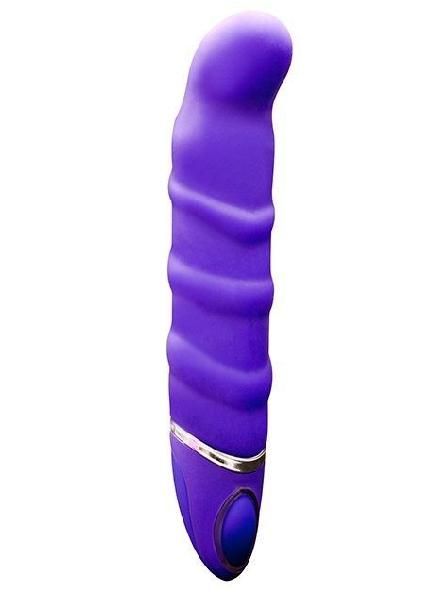 Фиолетовый перезаряжаемый вибратор с ребрышками PROVIBE. Имеет загнутую головку для лучшей G-стимуляции, а также 10 режимов вибрации.