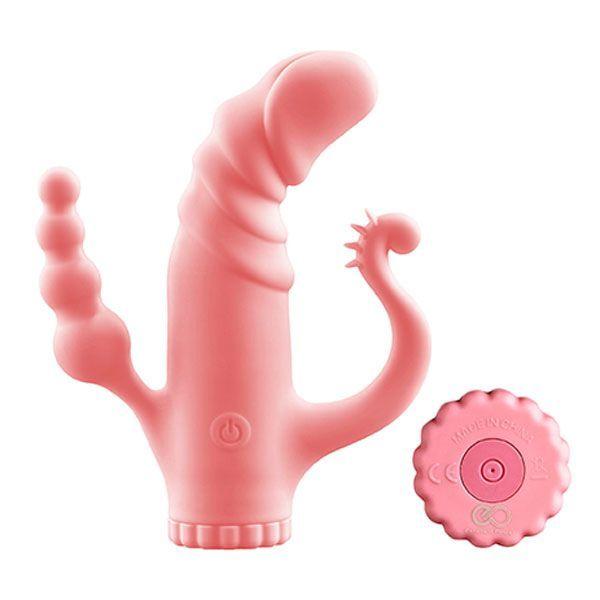 Розовый G-стимулятор с дополнительными отростками TRI-BRATOR. Перезаряжаемый, имеет 10 режимов вибрации. Выполнен из силикона. Рабочая длина - 12 см.