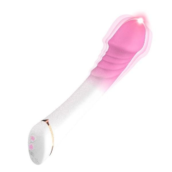 Бело-розовый вибромассажер с крупной головкой - 20,4 см.
